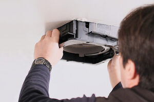 福山市の戸建て住宅にて室内換気扇の取り替え工事を実施|異音と吸引力低下を改善